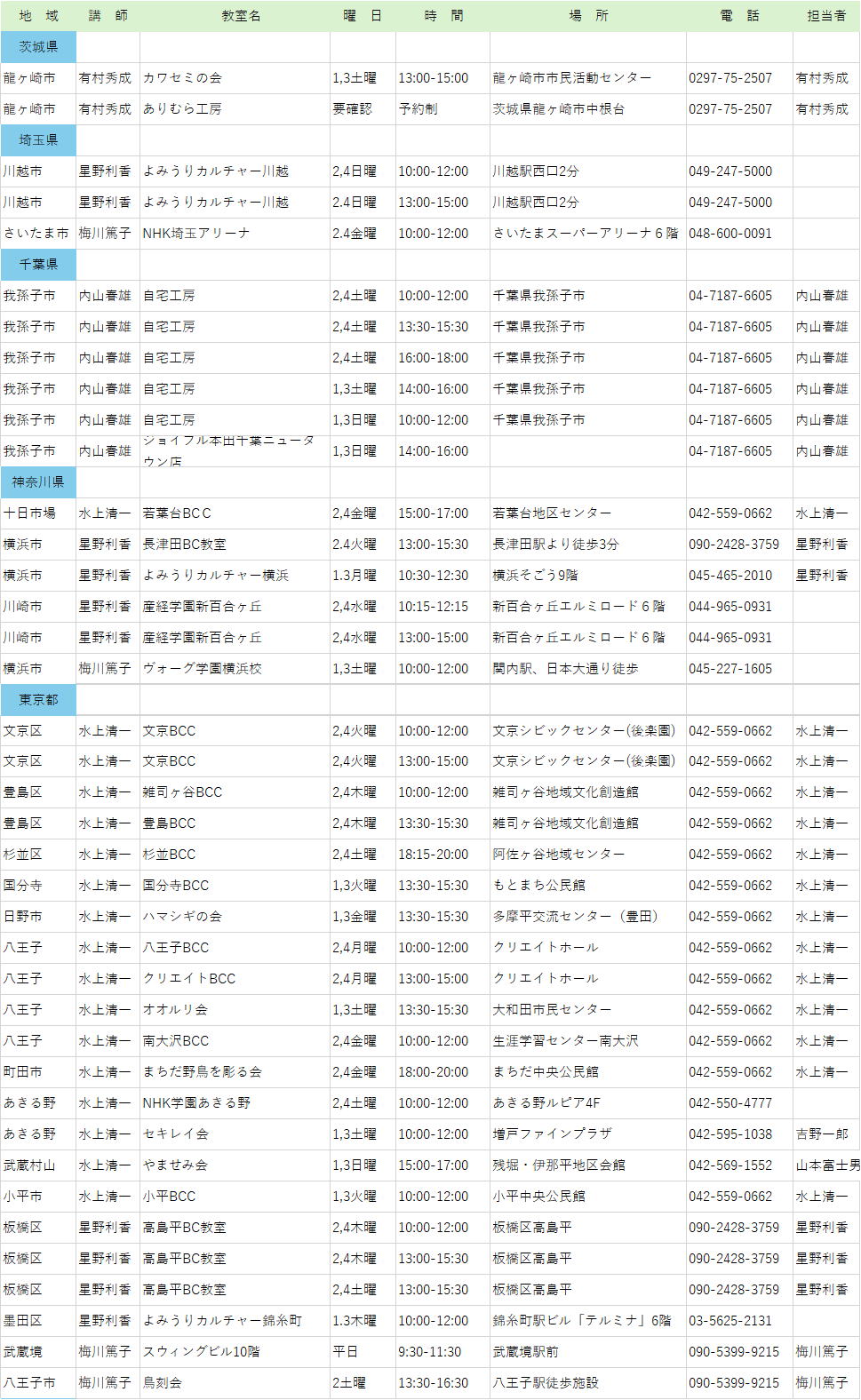 ・教室の詳細につきましては、各教室へお問い合わせ願います。